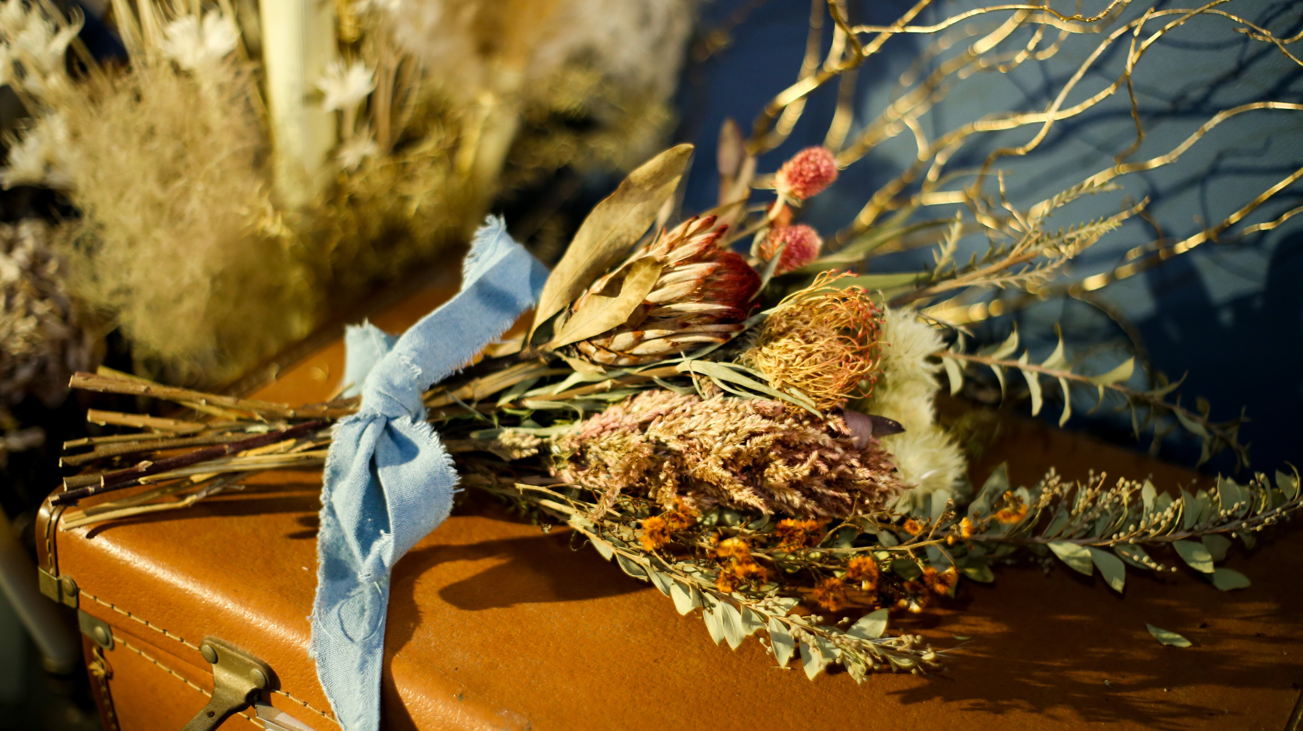 ドライフラワーは大変デリケートな為、輸送中に花や葉が落ちてしまう場合がございます。